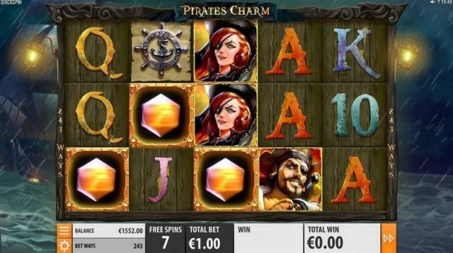 Zwischen 20 Cent und 100 Euro kannst du bei Pirates Charm online investieren, um auf hohe See mitgenommen zu werden. Gewinnlinien müssen diesmal nicht eingestellt werden, denn Quickspin hat den Spielautomat mit dem beliebten All Ways to Win Konzept ausgestattet. Heißt im Klartext, dich erwarten bei Pirates Charm in jeder Runde sagenhafte 243 Gewinnwege. Die Chancen, etwas vom Piratenschatz abzukriegen, stehen also gar nicht schlecht.